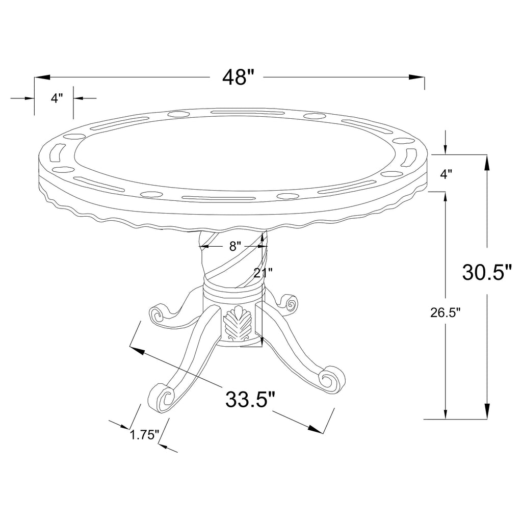 Game Table: Width: 48.00, Depth: 48.00, Height: 30.00, Weight: 123.64