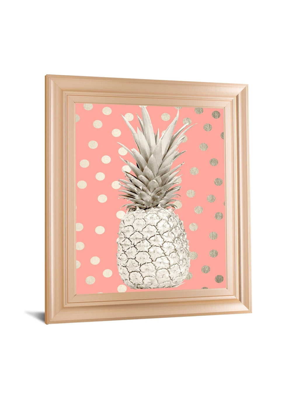 White Gold Pineapple On Polka Dots Pink By Nature Magick 22X26 Framed Print